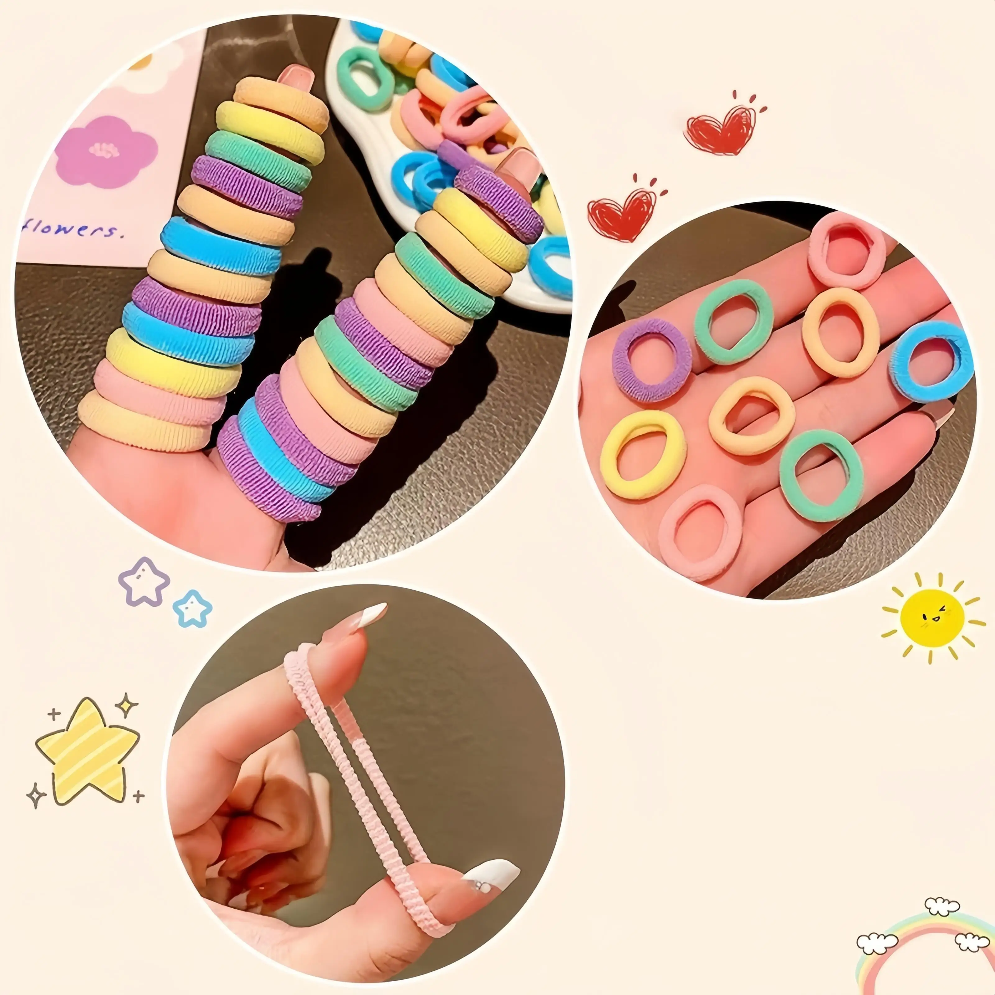 100PCS Girls Colorful Nylon Elastic Hair Bands Ponytail Hold Small Hair Tie Rubber Bands Women Scrunchie Kids Hair Accessories